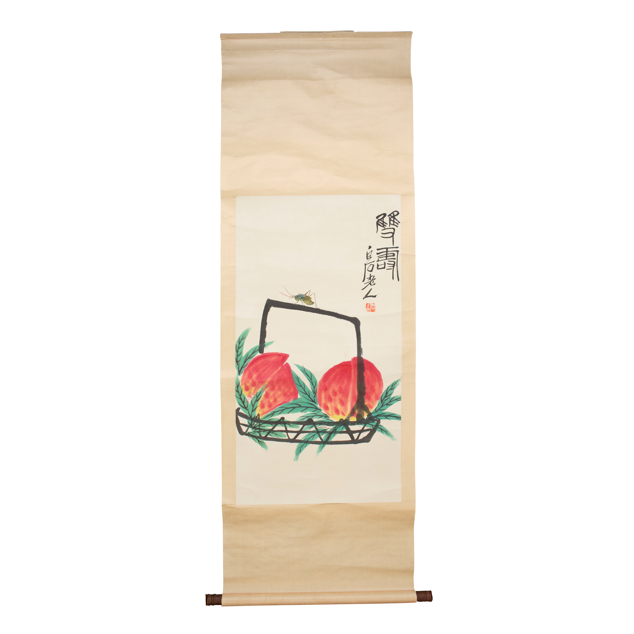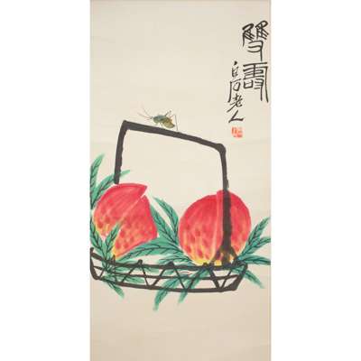 齊白石款 《雙壽》 加彩木刻版畫 立軸