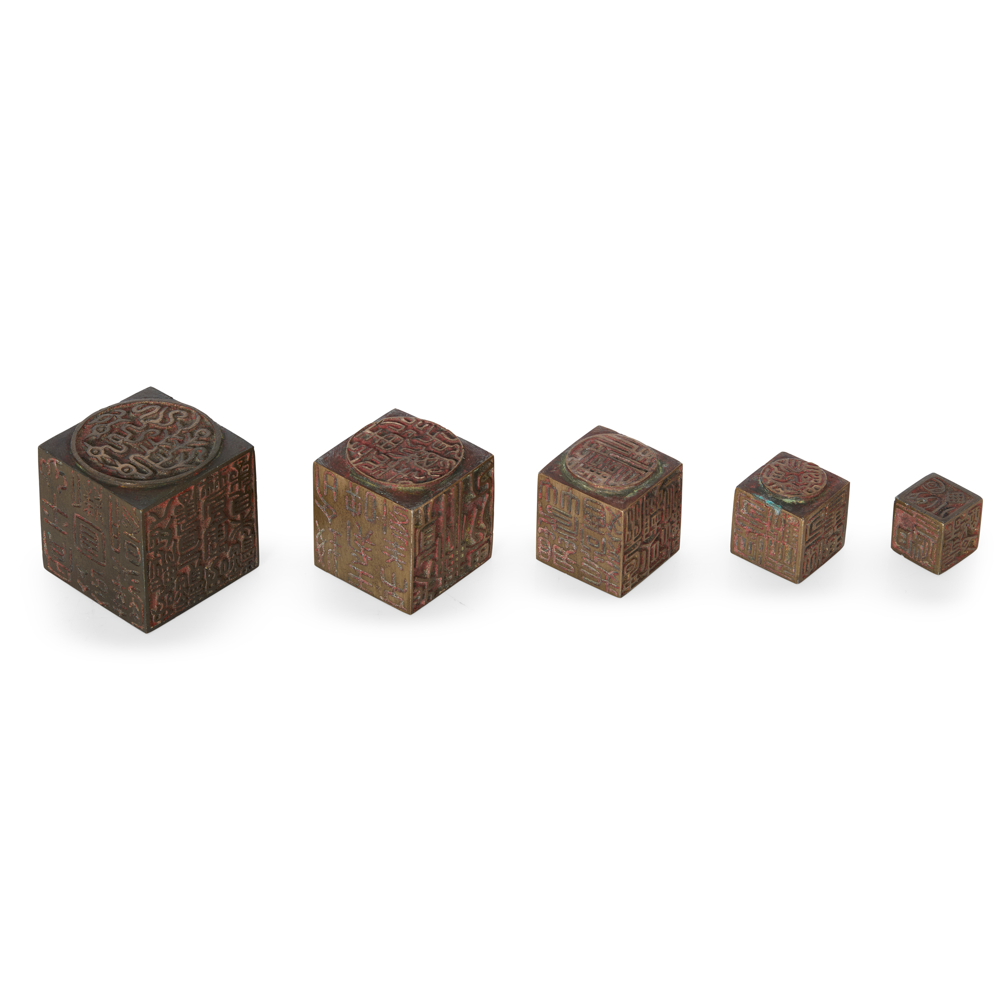 [PRIVATE SCOTTISH COLLECTION, RENFREWSHIRE] SET OF FIVE CHINESE BRONZE SEALS