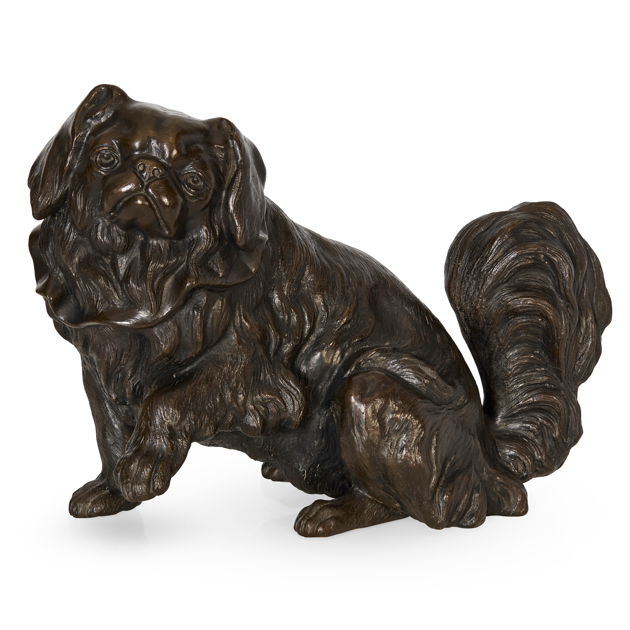 [PRIVATE ENGLISH COLLECTION, ENGLAND] JAPANESE BRONZE OKIMONO OF LONG-EARED CHIN DOG