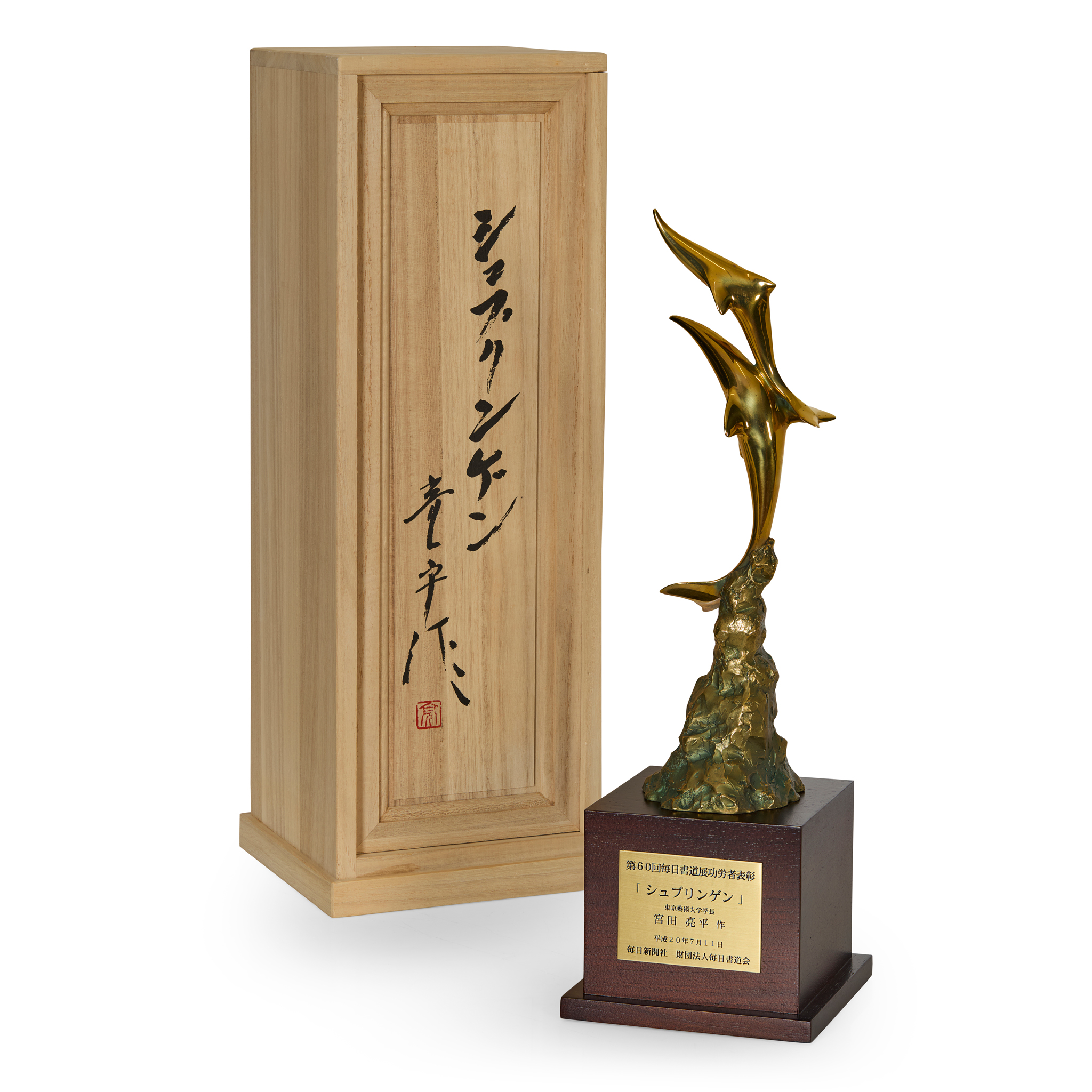 宮田亮平 銅雕塑 木座 共箱