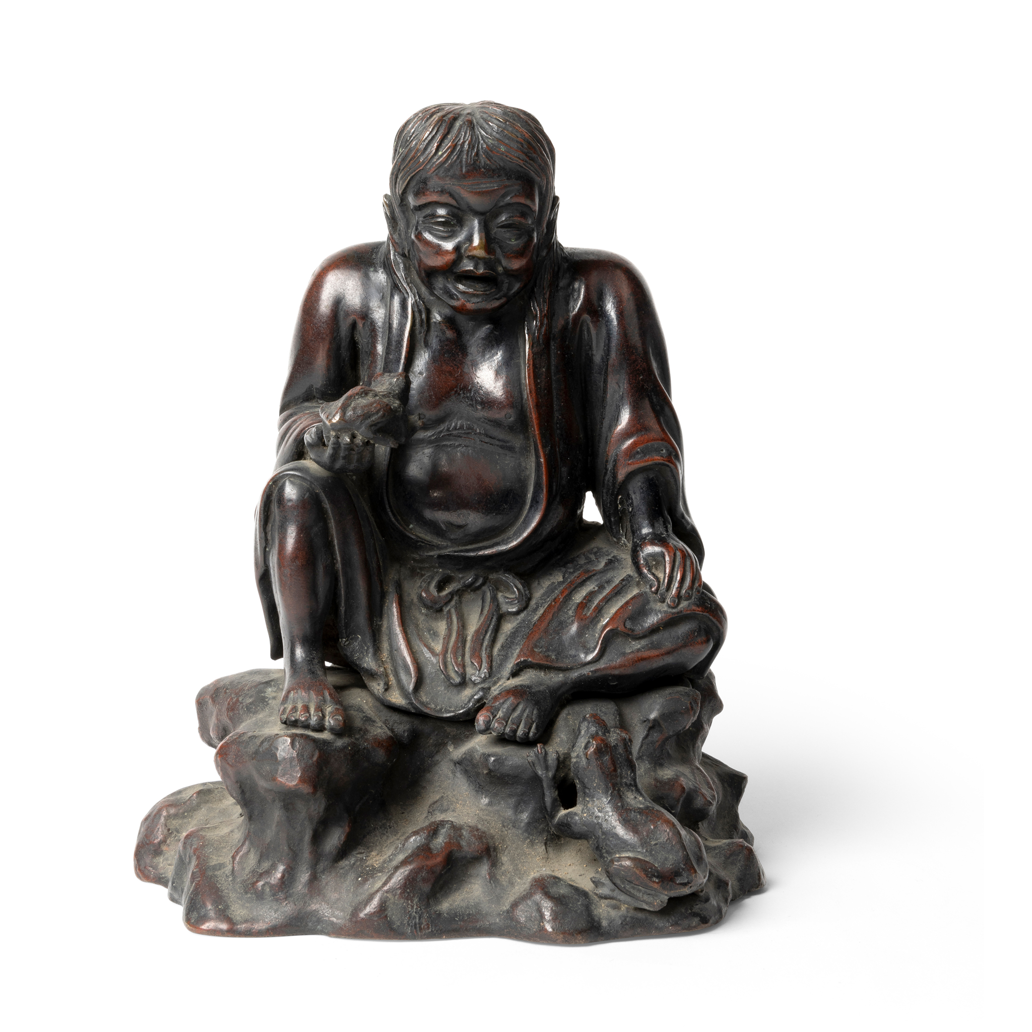 本间琢斋 銅蝦蟇仙人像置物