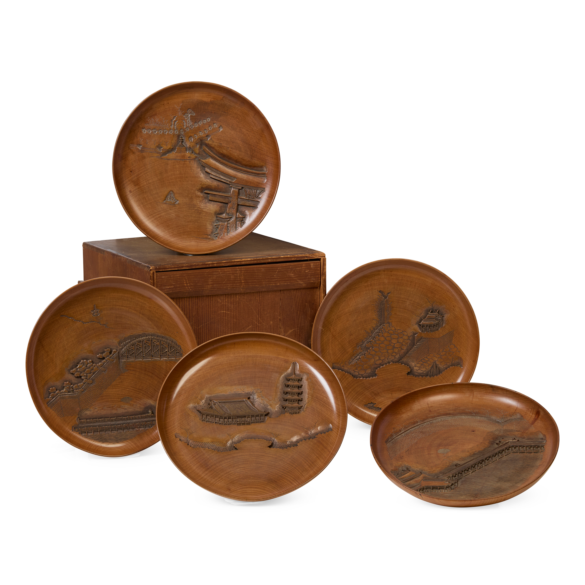[PRIVATE ENGLISH COLLECTION, ENGLAND] SET OF FIVE JAPANESE WOODEN TEA TRAYS