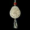 白玉透雕福字珮 帶琥珀珠