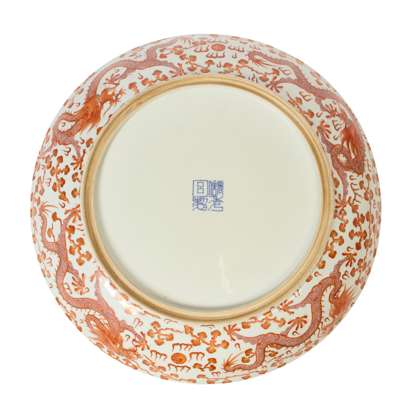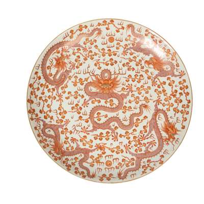 LARGE CHINESE IRON-RED AND GILT-DECORATED 'DRAGON' CHARGER