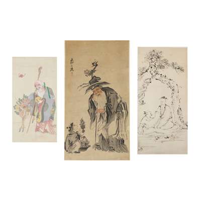 蘇蘭坡款 人物圖 水墨設色紙本、高琪沛款 松下高士圖 水墨紙本、佚名 壽老圖 水墨設色紙本 立軸(共三幅)
