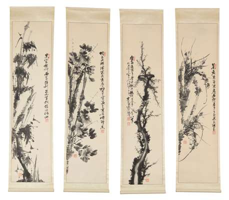 ink on paper, with inscriptions, seals and signature, dated to Ren Yin year during the Daoguang period, 1842AD, set of four hanging scrolls (4)