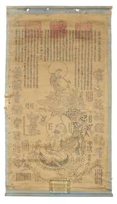 CHINESE INK PAINTING OF AN ARHAT AND SUTRA CALLIGRAPHY