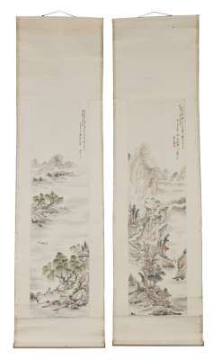 清末民初 西塘款 山水圖 水墨設色紙本 立軸 (一組四幅)