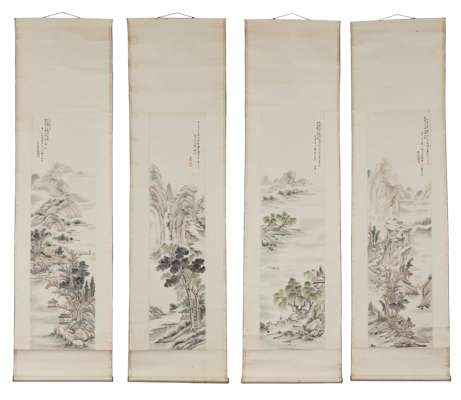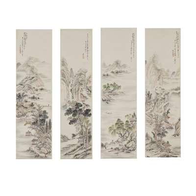 SET OF FOUR CHINESE LANDSCAPE PAINTINGS, LATE QING DYNASTY TO REPUBLIC PERIOD