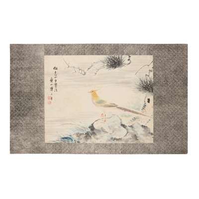 including a set of four album leaves depicting birds, ink and colour on paper; and a set of two album leaves with marine subjects, some with inscriptions and signature (6)