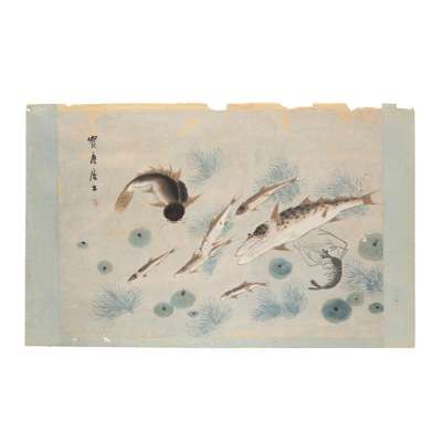 陳元章 鳥及魚圖 水墨設色紙本 鏡心(共六幅)
