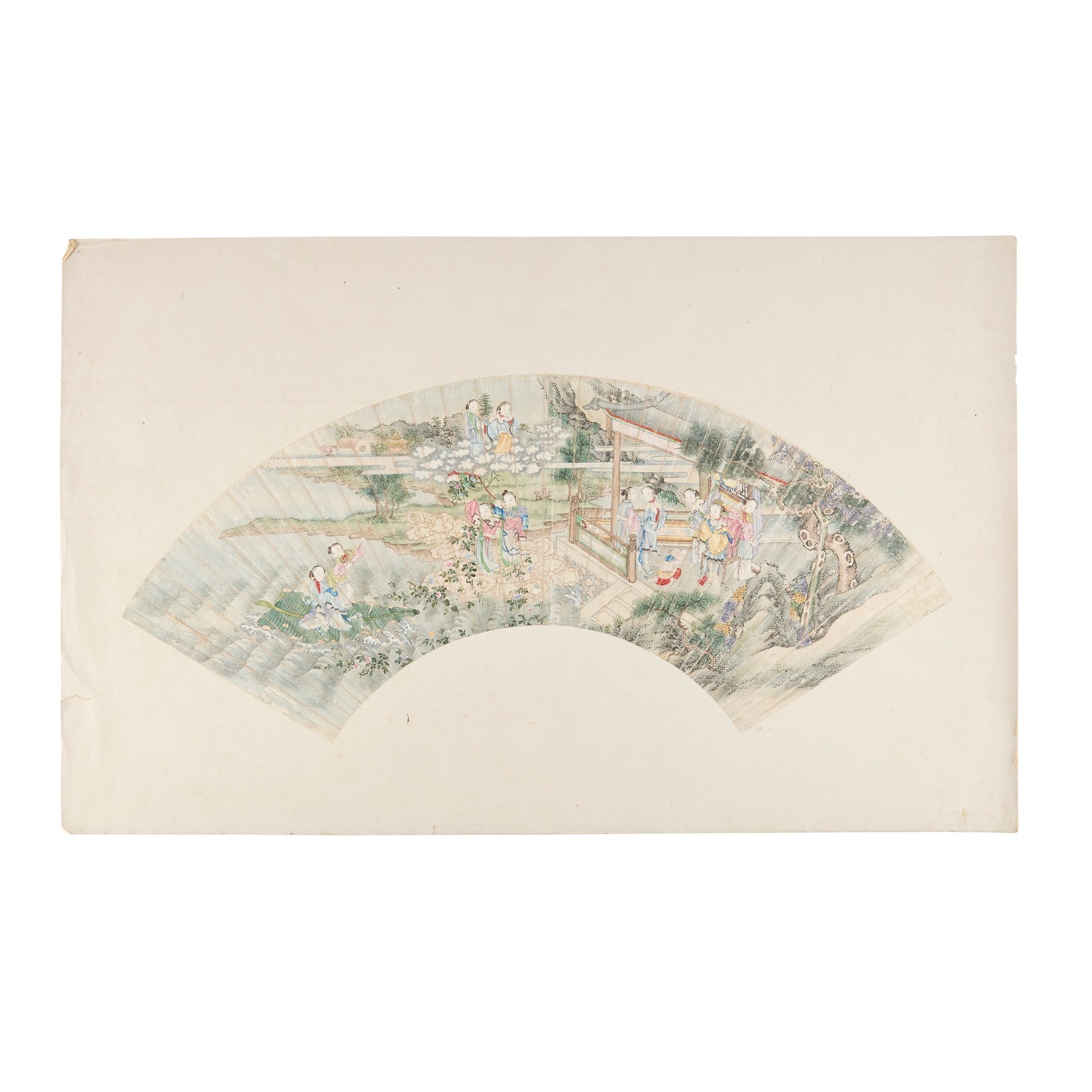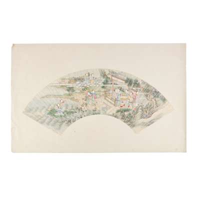 ink and colour on paper, unsigned, fan-shaped album leaf
