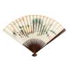 FAN 7: SIX GEESE, FLOWERS AND WATER, embroidered silk, with gold edges, bamboo guards;