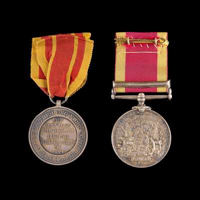 one Hong Kong Plague Medal, awarded to Sir James Stewart Lockhart by the Hong Kong Community for his services during the plague epidemic, by Boucher and Wyon, English, dated 1894; and one China War Medal 1900, with clasp ‘Relief of Pekin’, the side with ‘346, Pte King Yung Ching, 1st Chinese Regiment’, both with coloured silk ribbons (2)