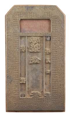 CHINESE BRONZE BANKNOTE PRINTING PLATE