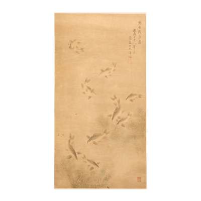 惲冰 《游魚戲藻圖》 水墨設淡色紙本 立軸