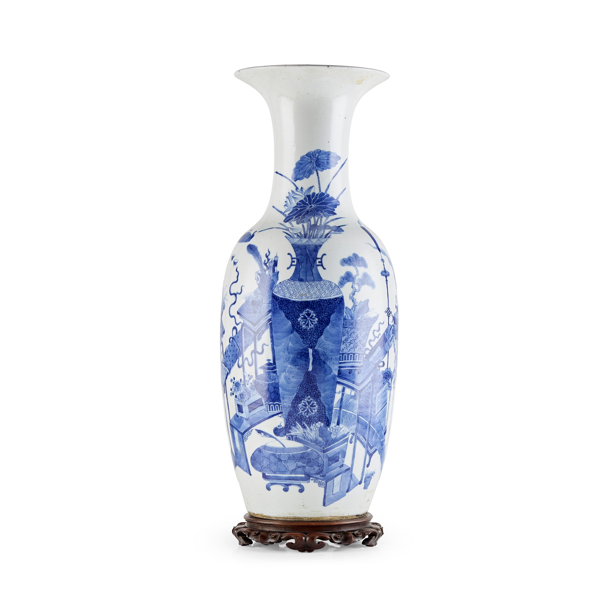 LARGE CHINESE BLUE AND WHITE 'BOGU' BALUSTER VASE