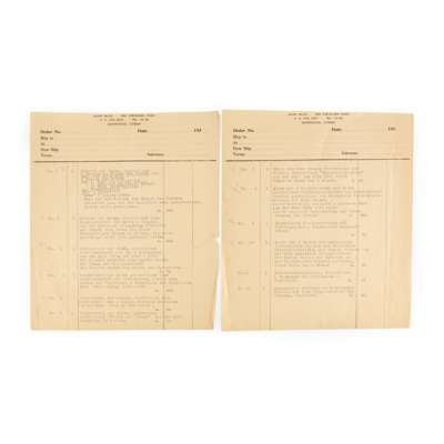 With an original receipt (header redacted), address in 620 Szechuen Road, Shanghai, China, entry 8 in German roughly translated as ‘Album with five hand-painted silk works depicting love stories, accompanied by related poetry written by famous personalities, embellished with gold. An exceptionally rare and beautiful work from the Ming period (1368–1643). (See separate description and translation of the text.)’ and original documents in German and English showing the translation of the Chinese text.