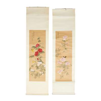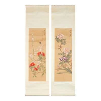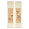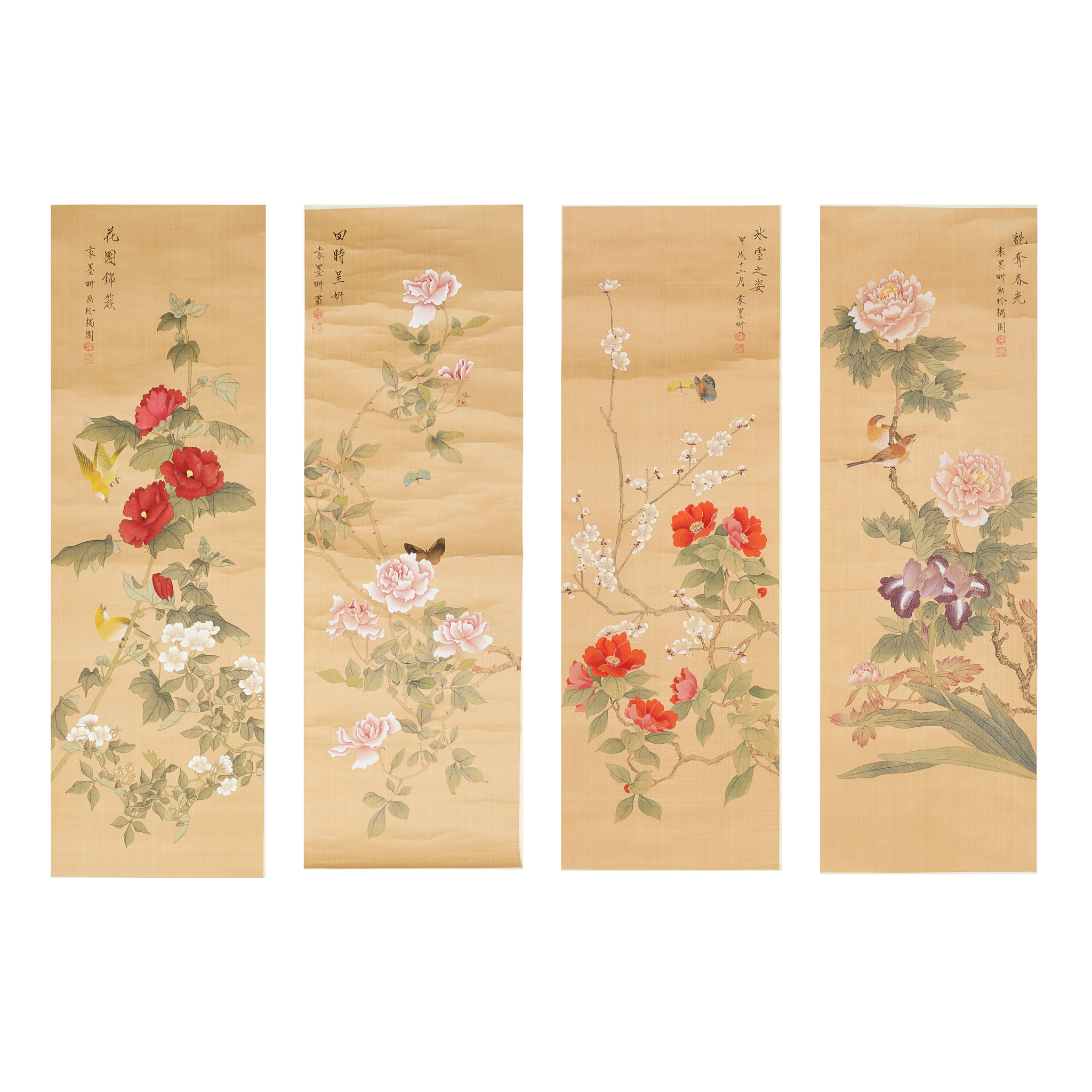 ink and colour on paper, each finely painted with birds and flowers, inscribed and with seals, hanging scrolls (4)