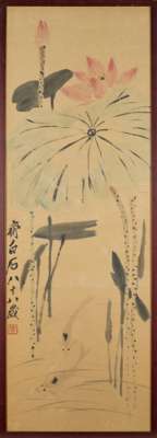 齊白石款 荷塘清趣圖 紙本設色 鏡框