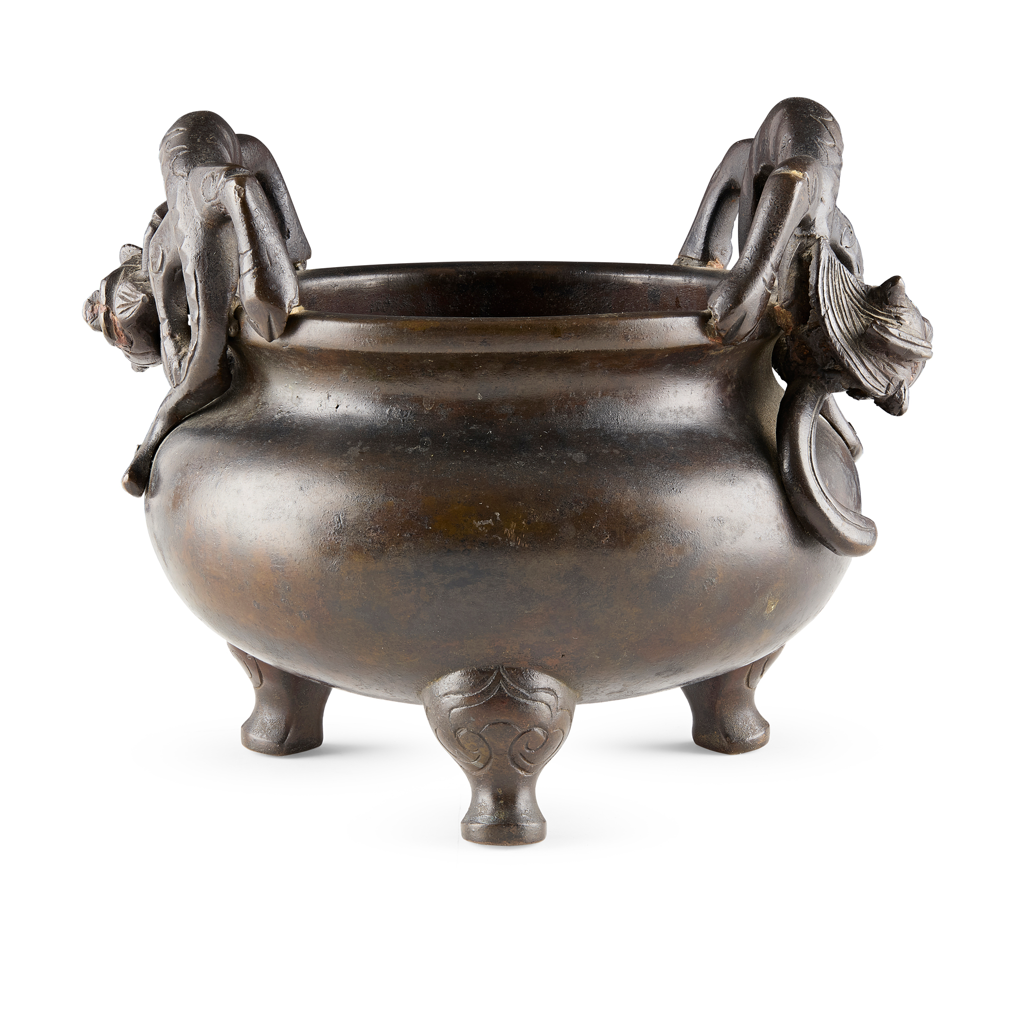 [PRIVATE COLLECTION, GLASGOW] CHINESE BRONZE 'DRAGON HANDLED' TRIPOD CENSER