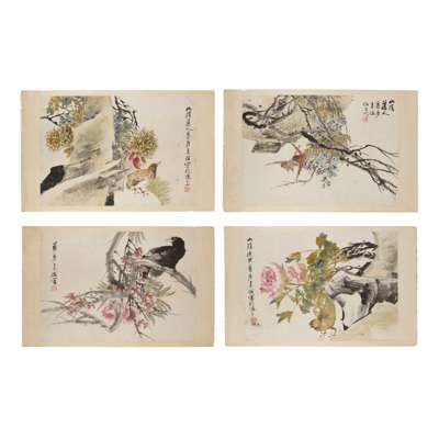 海派 朱夢廬/朱偁 花卉翎毛圖 水墨設色紙本 (共四幅)