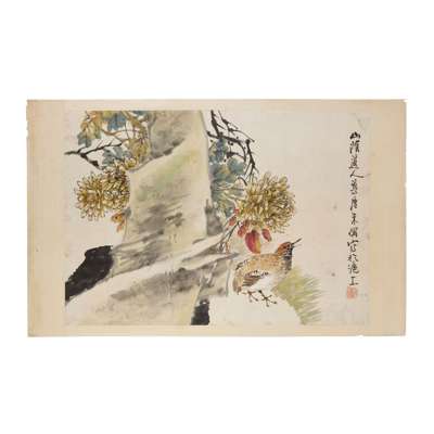 Zhu Menglu (1826–1900), also know as Zhu Cheng, was a master of freehand flower-and-bird painting. He inherited and further developed Yun Shouping's "boneless" technique, employing brushwork that was both concise and vivid, with elegant and understated colouring. He was particularly skilled at depicting the dynamics of birds, creating paintings full of vitality and charm. His works combined the refined taste of literati with the aesthetic appeal of the common people, and were widely popular in the art market.