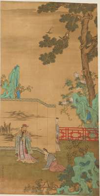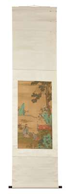 錢選款 人物圖 水墨設色絹本 立軸