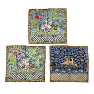 GROUP OF THREE CHINESE SILK-EMBROIDERED RANK BADGES