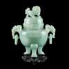 [COLLECTION FROM HOMER LING] CHINESE JADEITE TRIPOD CENSER WITH COVER