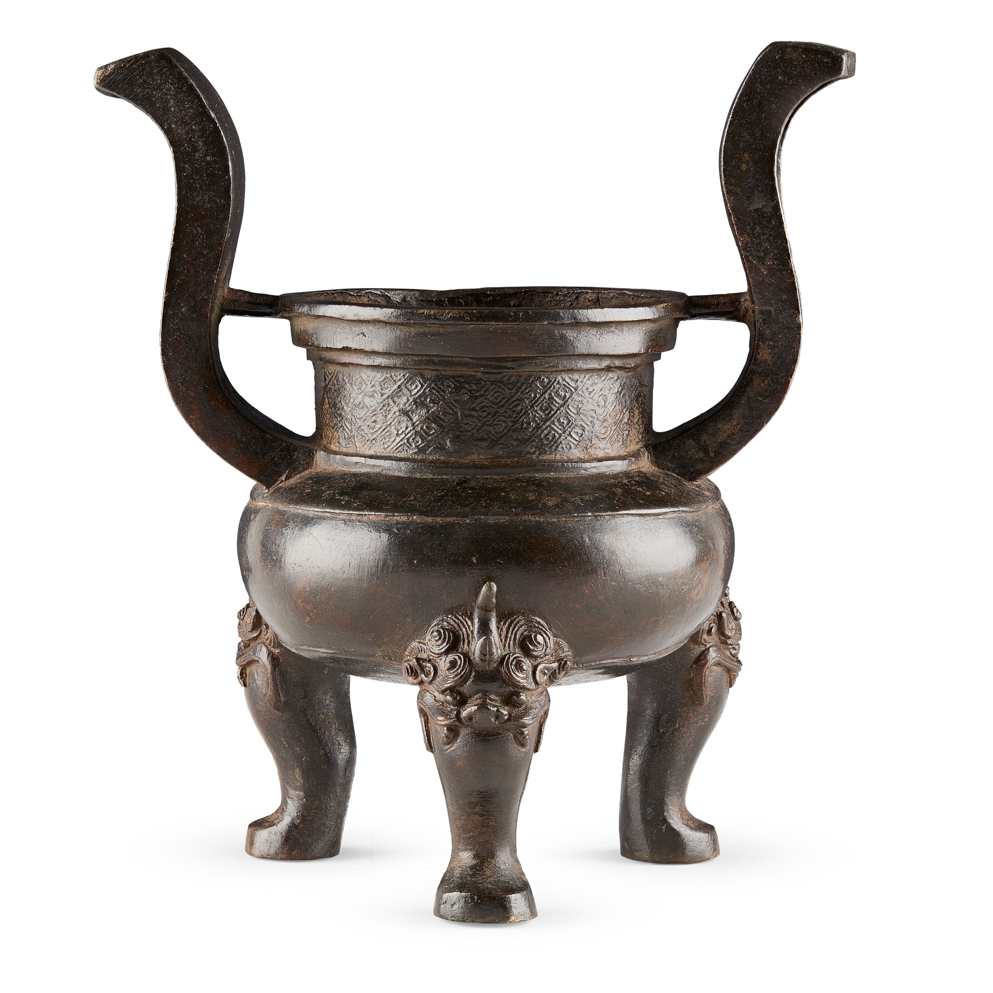 [PRIVATE SCOTTISH COLLECTION, PERTHSHIRE] CHINESE BRONZE HANDLED TRIPOD CENSER
