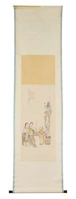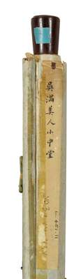 吳滿 美人童子圖 及 加官一品圖 水墨設色紙本 立軸(共兩幅)