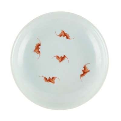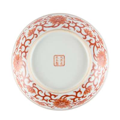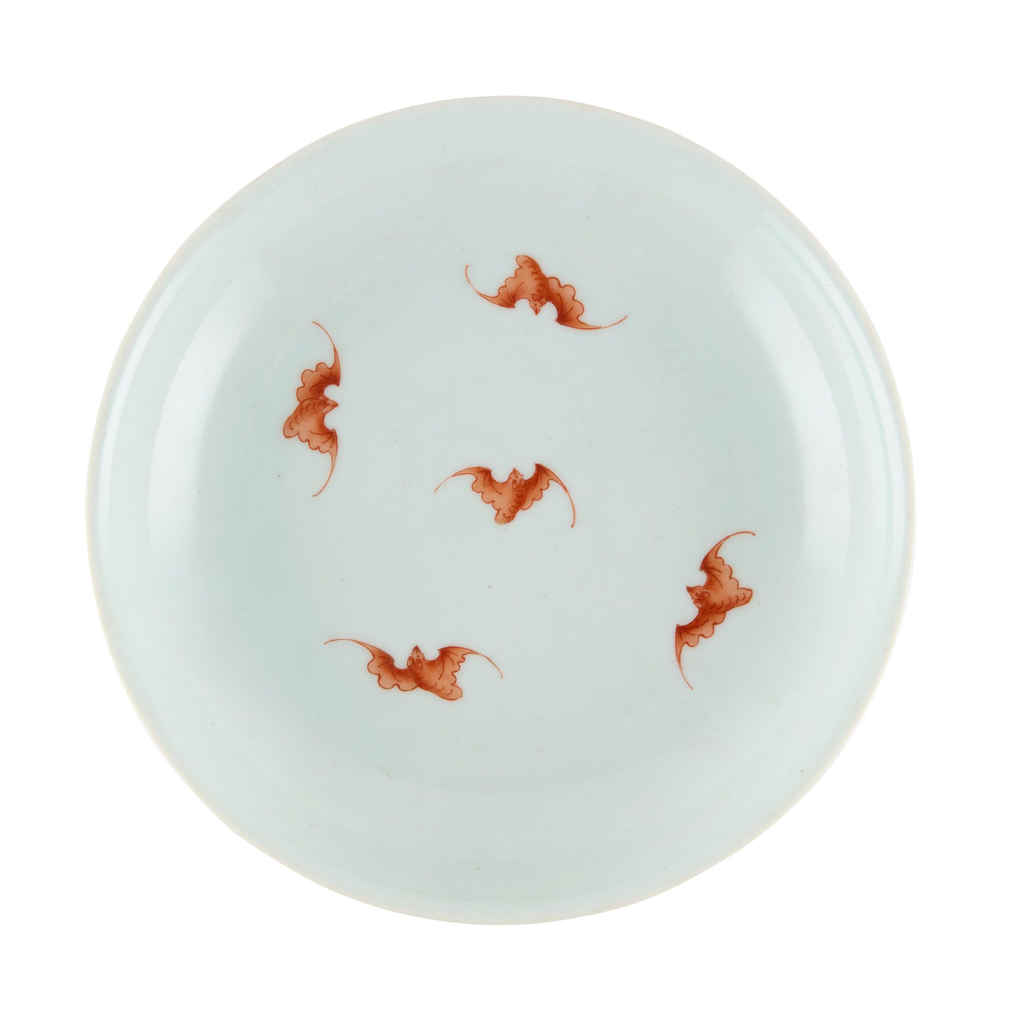 CHINESE IRON-RED-DECORATED 'BAT AND LOTUS' DISH
