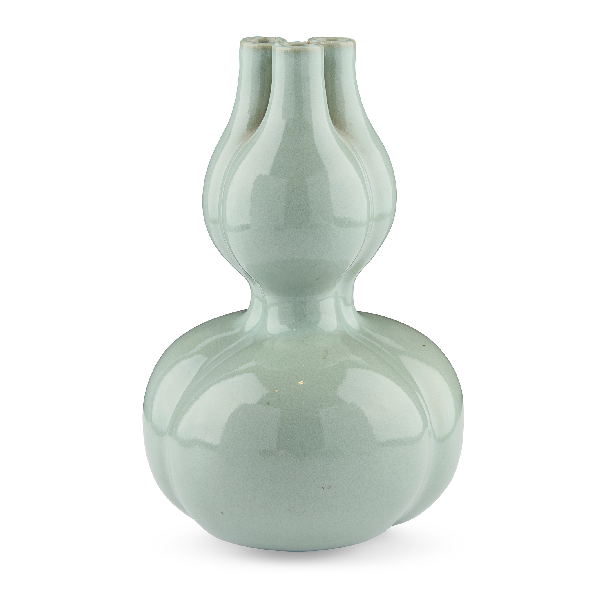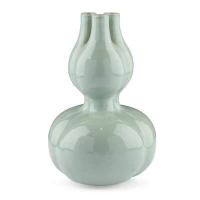 CHINESE CELADON-GLAZED CONJOINED DOUBLE-GOURD-SHAPED VASE