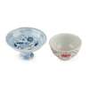CHINESE BLUE AND WHITE STEM CUP AND AN IRON-RED DECORATED CUP