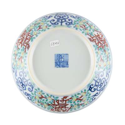decorated inside out with stylised ‘Shou’ characters with fruits, lingzhi and scrolling tendrils, the base inscribed with a six-character Qianlong mark