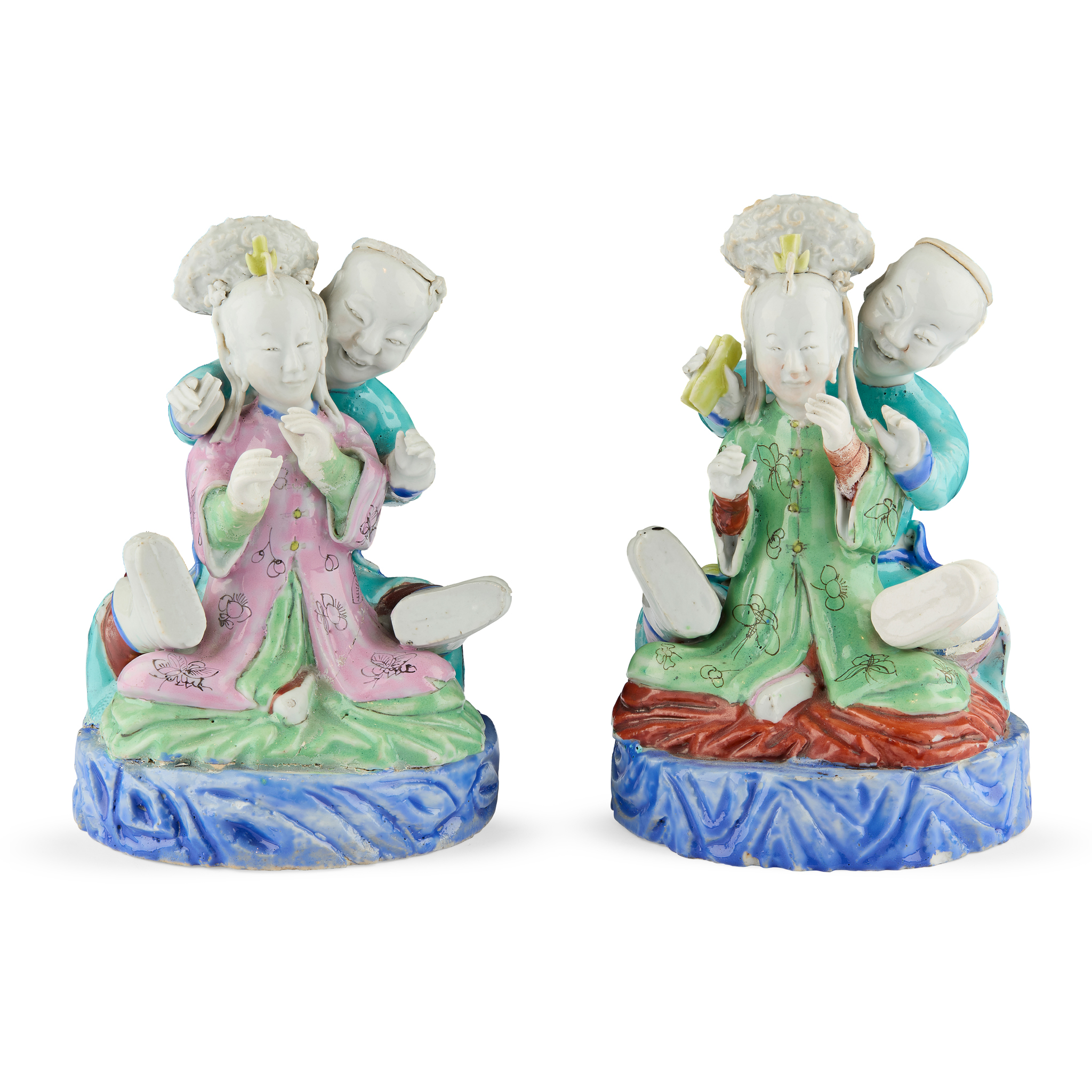 [PRIVATE COLLECTION, WEST OF SCOTLAND] TWO CHINESE FAMILLE ROSE FIGURAL GROUPS