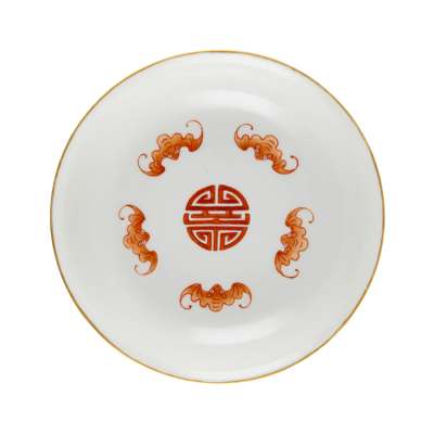 CHINESE YELLOW-GROUND FAMILLE ROSE AND IRON-RED-DECORATED 'FIVE BATS' SAUCER