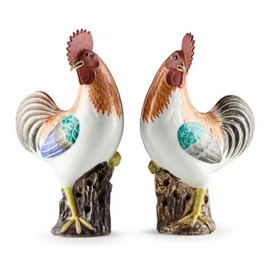 PAIR OF CHINESE FAMILLE ROSE ROOSTERS