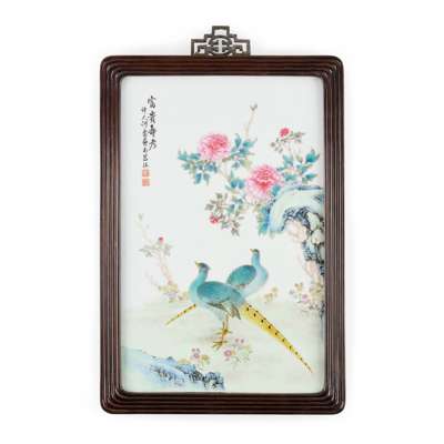 CHINESE FAMILLE ROSE 'PHEASANT AND PEONY' PORCELAIN PLAQUE