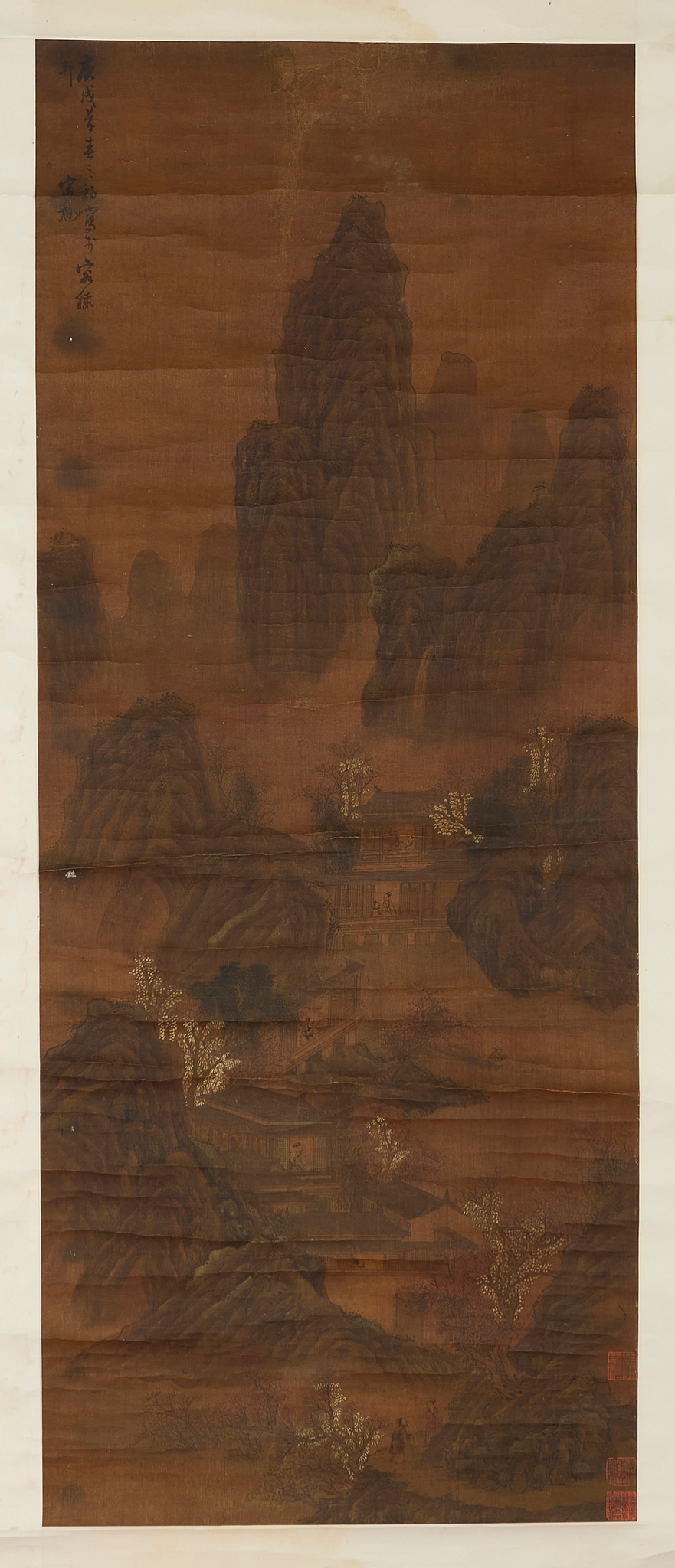 ink and colour on silk, with inscriptions, seals and signature, dated to the spring of Geng Xu year, corresponding to 1550AD, hanging scroll