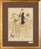 歌川豊広 人物騎馬圖、歌川広重 「木曽海道六拾九次之内 須原」、鈴木春信 「見立忠臣蔵 文詠む男女」、渓斉英泉 「河渡 長柄川鵜飼船」、喜多川歌麿 「風流子寶合」木刻版畫 鏡框(共五幅)