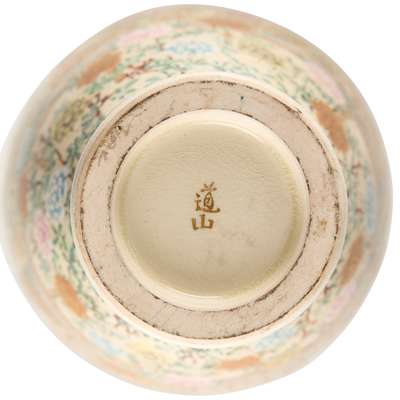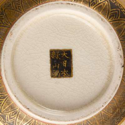 comprising: a pair of vases, the base marked ‘Dozan’, and a bowl, the base marked ‘Dainihon Ryokuzan ga’ (3)