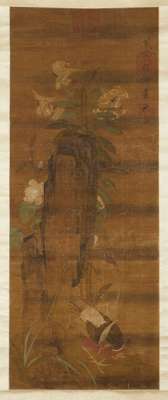 宋徽宗款 花鳥圖 水墨設色絹本 立軸