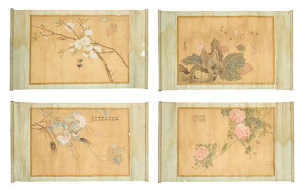 ink and colour on silk, with seal and signature, a set of four handscrolls (4)