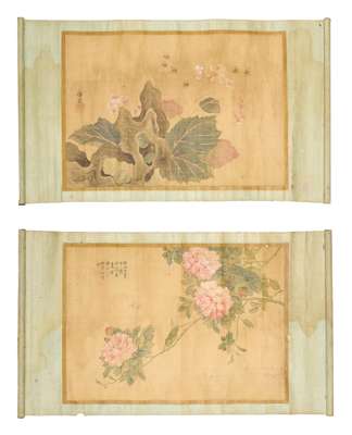 一九零二年 張潛 昆蟲花卉畫 水墨設色絹本 卷軸(一組四幅)