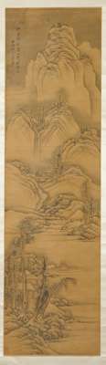 藍瑛款 山水圖 水墨設色絹本 立軸