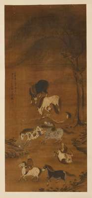 孫雲亭 九駿圖 水墨設色絹本 立軸