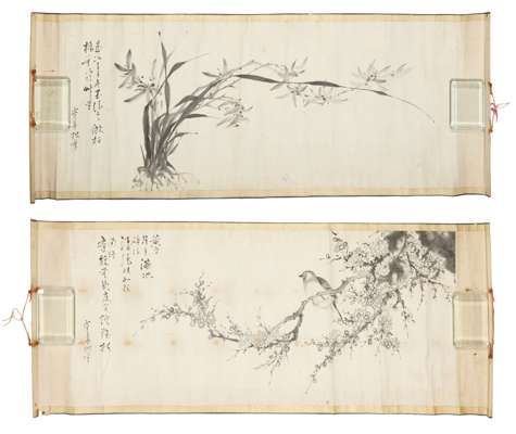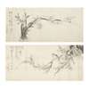 林雲亭 蘭及花鳥圖 水墨紙本 卷軸(共兩幅)