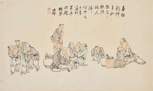 蘇六朋, 字枕琴,號怎道人,別署羅浮道人。廣東順德人,與蘇仁山合稱為「嶺南畫壇二蘇」。善畫風俗人物,作品反映清朝中期百姓的日常活動。畫風取法宋元,受閩派上官周與黃慎畫風影響,細筆者尤佳。香港中文大學文物館藏有蘇六朋《白描羅漢卷》,廣州藝術博物院藏有蘇六朋《羅浮仙賒酒圖》及《文會圖》,上海博物館藏有《太白醉酒圖》,香港藝術館藏有《蘇武牧羊圖》等。